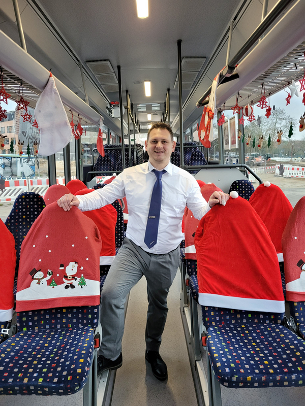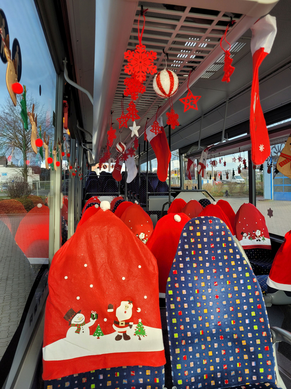 Wer den Bus vorne beim Fahrer betritt, wird mit weihnachtlicher Dekoration überrascht. Die ersten Fahrgastreaktionen sind durchweg positiv. „Was für eine tolle Überraschung; so fährt man gerne zur Arbeit“, kommentiert ein Fahrgast.