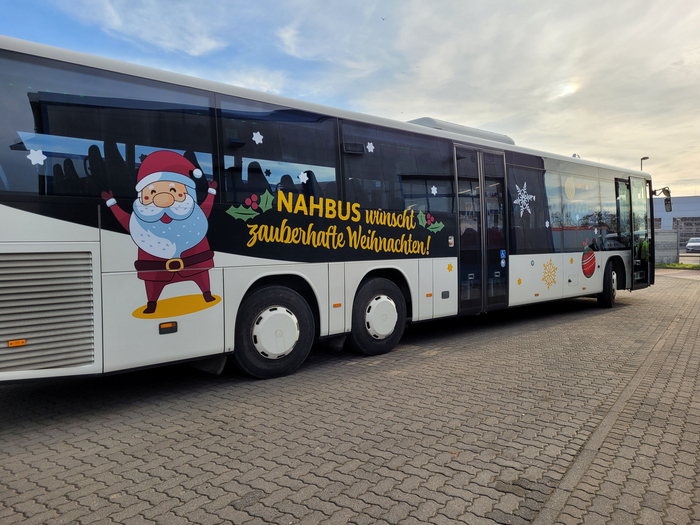 Um die Fahrgäste auf Weihnachten einzustimmen, wurden drei NAHBUS Fahrzeuge weihnachtlich dekoriert. Die Weihnachtsbusse sind bereits von außen gut zu erkennen.